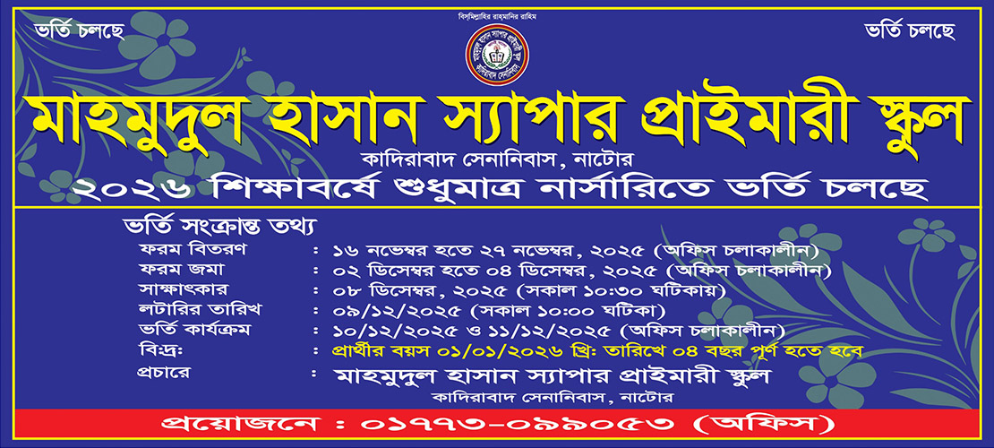 মাহমুদুল হাসান স্যাপার প্রাইমারী স্কুলে একটি ওয়েবসাইট খোলা হয়েছে জেনে আমি ... Read More